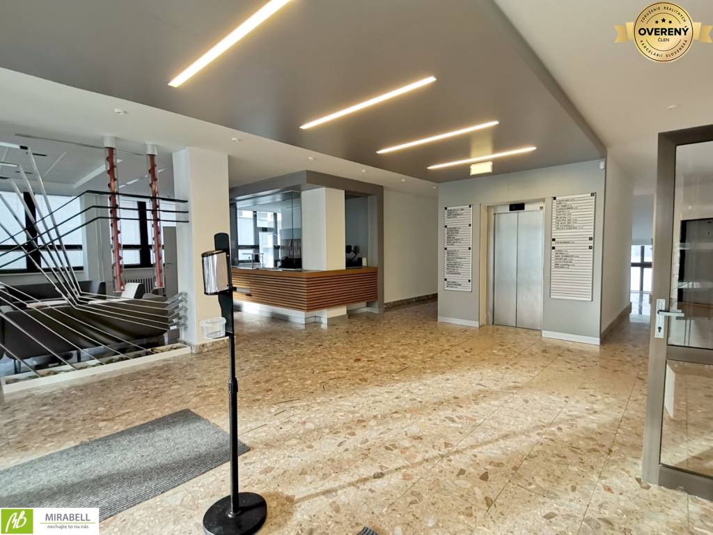 vrátnica, kamerový systém, výťah, koberec alebo plávajúca podlaha, kuchynka, klimatizácia, možnosť zriadenia sídla, internet Slovanet