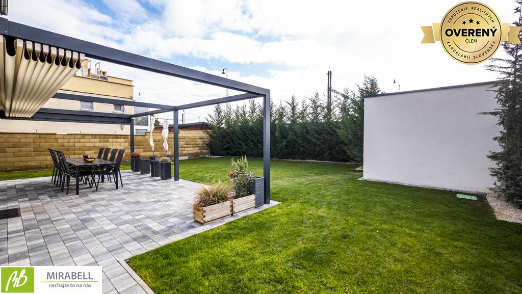 Na pozemku a v záhrade sú vysadené dreviny a trávnik s automatickou závlahou z vlastnej studne. Súkromie je zabezpečené oplotením celého pozemku vyšším okrasným oplotením a vstupnou bránou na diaľkové ovládanie. Bezpečnosť nehnuteľnosti je zabezpečená bezpečnostným zariadením s viacerými okruhmi. Kúrenie je elektrické podlahové. Pripojenie na verejný vodovod a verejnú kanalizáciu. Internet a televízia je zabezpečené prostredníctvom satelitu, s možnosťou pripojenia na optickú sieť. Nehnuteľnosť ponúka veľa výhod a jedným z benefitov, ktorý stojí za spomenutie sú úsporné náklady na pokojné bývanie a plnohodnotné celoročného využitie.